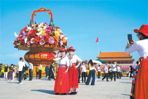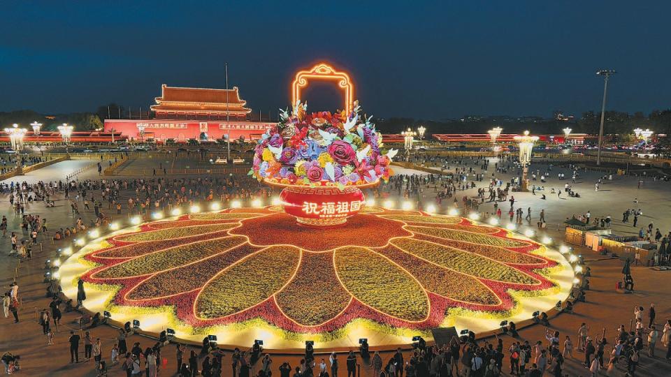 国庆将至,天安门广场“祝福祖国”巨型花篮花坛完工亮相,67个新优植物品种首登场。