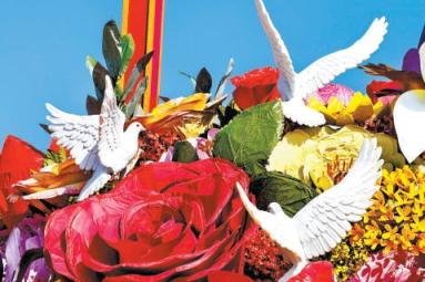 暮色降临,华灯初上,暖黄色的灯光亮起,今年首次引入发光鸽子造型,基座新增橙色,寓意葵花朵朵向太阳。花篮共使用196枝仿真花,篮中的荷花、月季、向日葵等花卉在灯光的照耀下越发娇艳欲滴。这抹温暖的亮色,为庄严肃穆的天安门广场平添了几分温馨与灵动。游客纷纷举起手机,拍照留念,记录下这难忘的时刻。