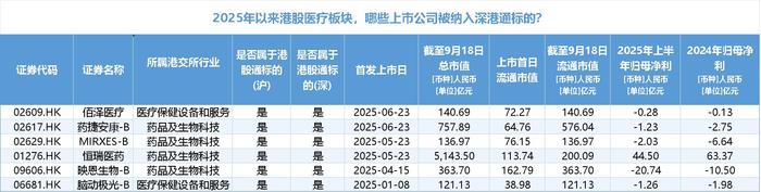 根据界面新闻统计,除药捷安康外,佰泽医疗(02609.HK)、MIRXES-B(02629.HK)、恒瑞医药(01276.HK)、映恩生物-B(09606.HK)、脑动极光-B(06681.HK)这5家医药企业在今年上市后不久就被纳入港股通标的。